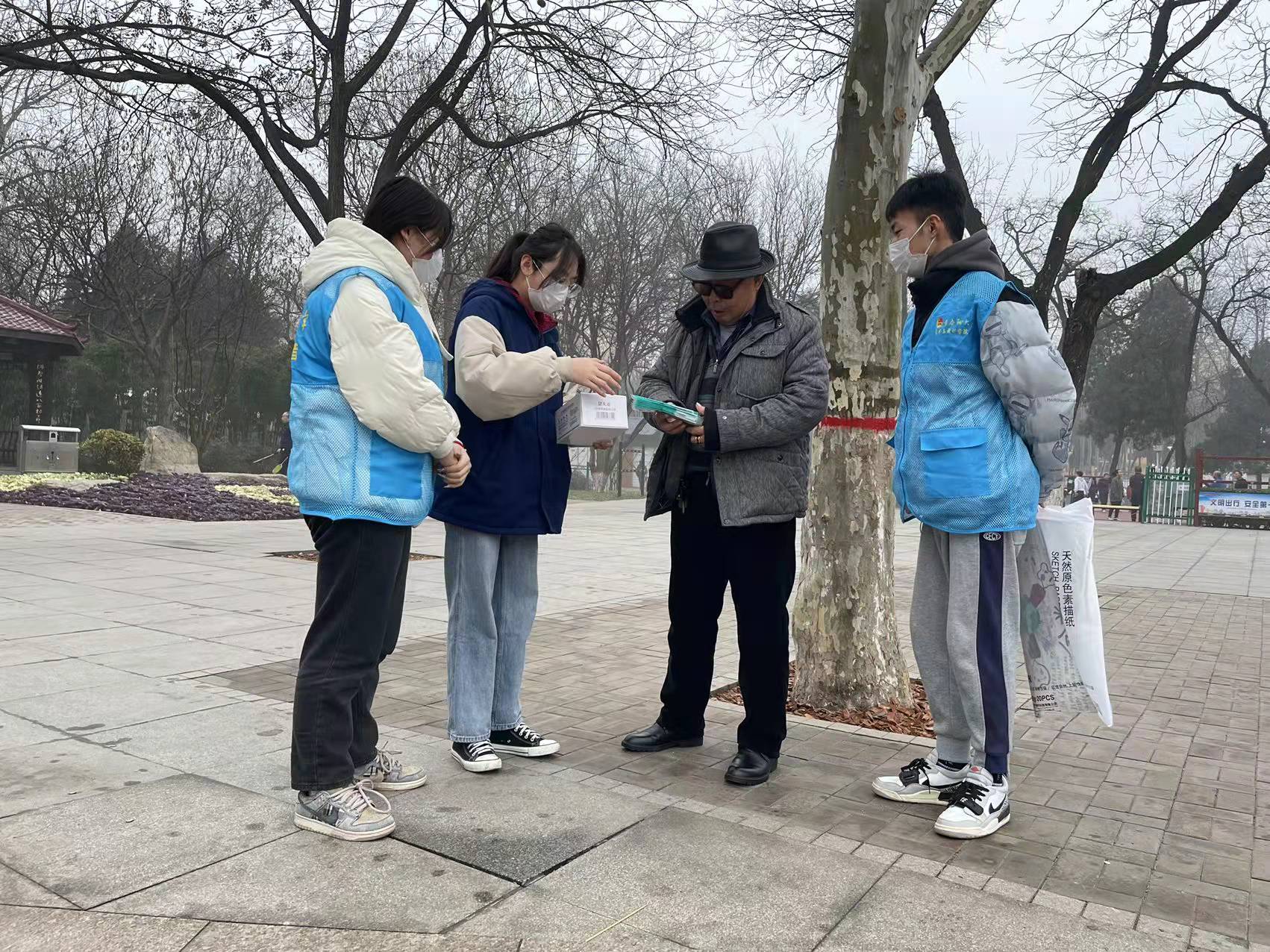 为贯彻落实新冠疫情防控工作,广泛宣传防疫知识, 进一步做好常态化疫情防控工作,引导广大市民养成科学佩戴口罩的良好习惯,切实提高市民自我防控意识,聊城大学美术与设计学院“全心权益”志愿文化艺术宣传队于2022年1月9日在聊城市东昌府区人民公园举办“发放防疫物品,传防疫之重要;宣传疫之危险,心中秉承防疫”活动。