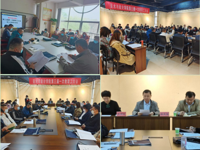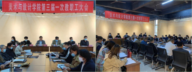 为全面贯彻习近平新时代中国特色社会主义思想和党的十九大精神、全国教育大会、新时代全国高等学校本科教育工作会议和我校第五次党代会、第六次本科教学工作教学会议精神,聚焦“两个根本”、“以本为本”、“四个回归”总体要求,4月14日,美术与设计学院在多功能厅召开第三届第一次教职工大会,学院领导班子及全体教职工出席会议。