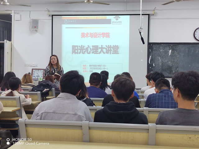 为了帮助同学们缓解人际社交压力,提高心理健康素质,拥有一个充实美好的的大学生活,让大家了解到良好的人际关系有利于心理健康发展,塑造积极开朗的人格。基于以上目的, 美术与设计学院于9月23日19点在7#101举办了以“人际交往,从心出发”为主题,由朱晴老师主讲的阳光心理大讲堂。