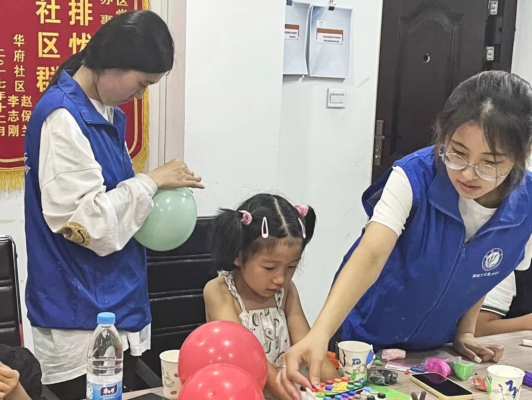 为认真贯彻学习党的二十大精神,坚定理想信念,筑牢信仰之基。8月17日,美术与设计学院“与美同行”志愿服务队于山东省聊城市东昌府区新区街道华府社区开展“气球放飞青春梦 砥砺奋进二十大”主题手工绘画活动。