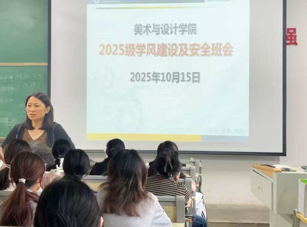 为切实加强2025级新生学风建设,筑牢学生校园生活安全防线,10月15日晚,美术与设计学院在西校区七号楼401合堂组织召开2025级学风建设及安全主题班会,班主任许中美主持会议,2025级全体学生全员参会。