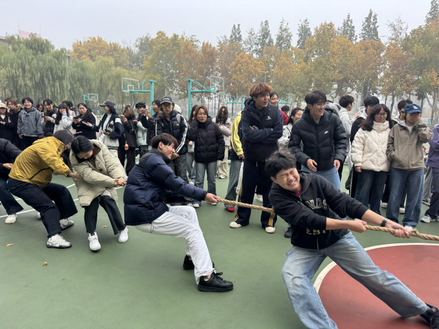 为了丰富同学们的校园文化生活,活跃校园气氛,增进学院之间的情谊交流,提高大学生参加阳光体育活动的积极性,促进学生间的交流,同时也为全面贯彻教育方针。美术与设计学院在11月1日上午于西校北篮球场举办了以“‘绳’彩飞扬 力聚一心”为主题的拔河比赛。