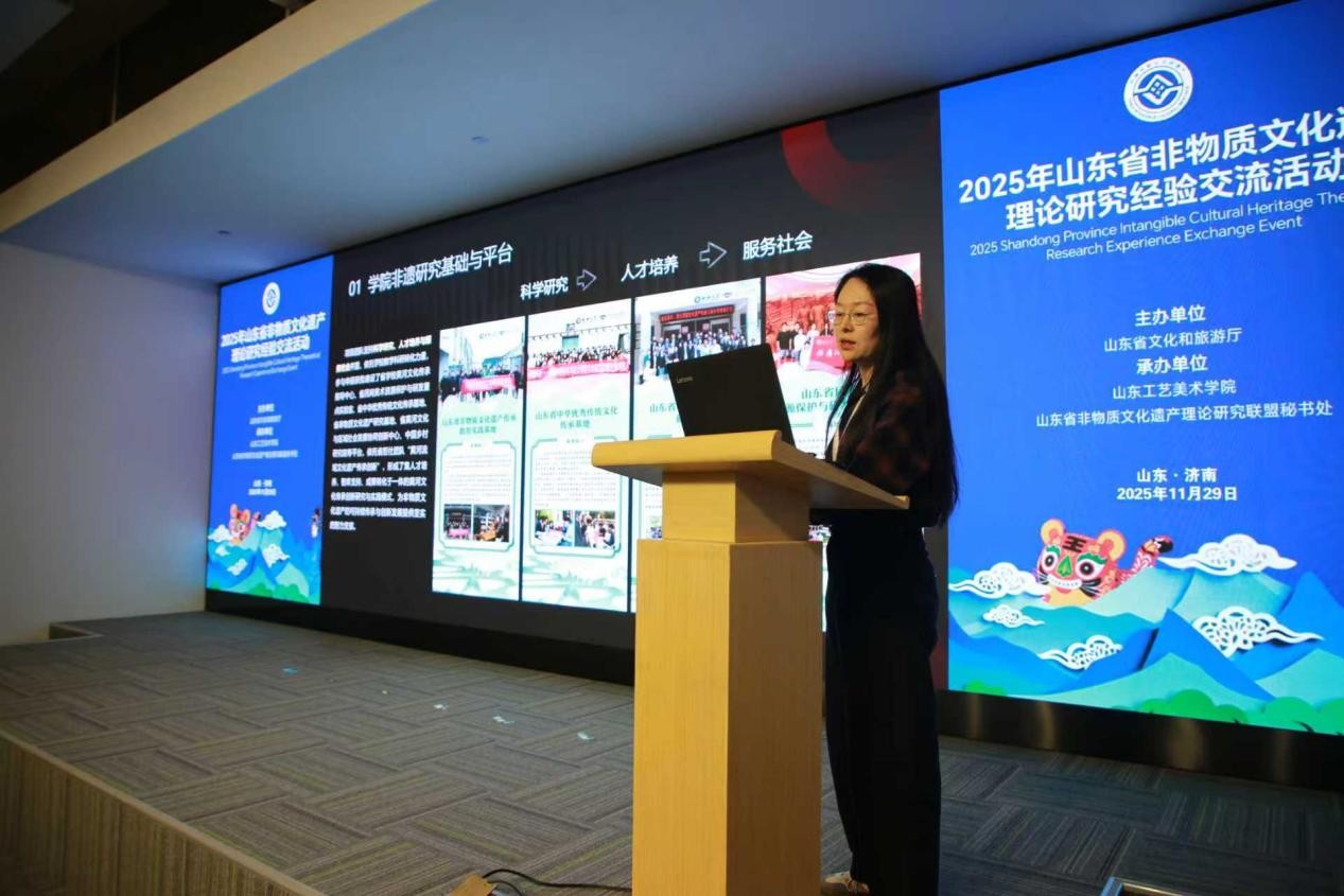 11月29日,2025年山东省非物质文化遗产理论研究经验交流活动在山东工艺美术学院长清校区举行。活动由山东省文化和旅游厅主办,山东省非物质文化遗产理论研究联盟秘书处、山东工艺美术学院承办。省文化和旅游厅非物质文化遗产处负责同志、省非物质文化遗产研究基地代表、媒体记者及学生代表等百余人参加。