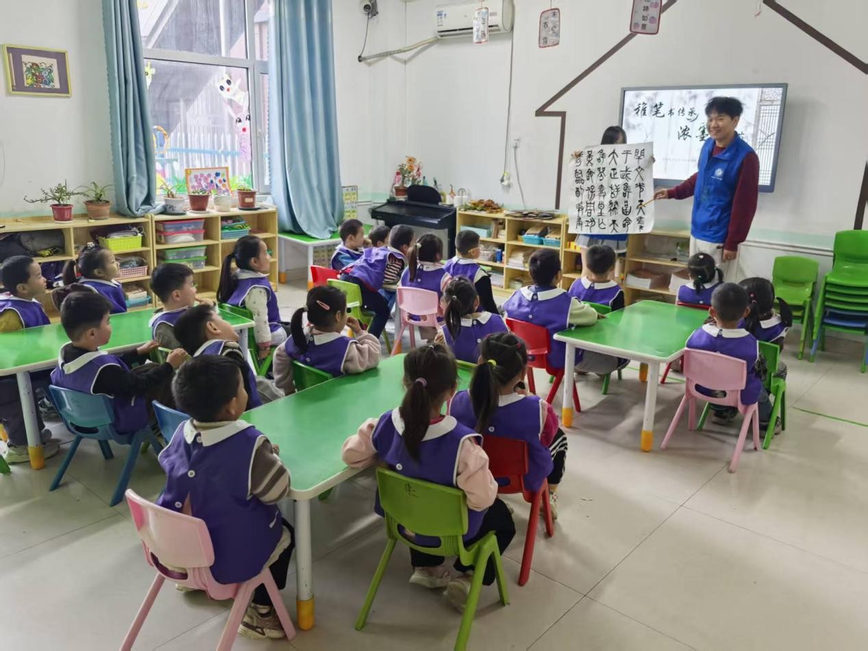 活动伊始,志愿者提前将笔墨纸砚分类摆放整齐,逐一为孩子们分发工具,接着现场展开书法基础讲解:汉字起源讲到篆隶楷行草的字体演变,每一处知识点都配合简单例子耐心说明。随后志愿者站在桌旁示范标准握笔姿势,再拆解横、竖等基本笔画的起笔、行笔、收笔技巧,孩子们端正伏案提笔,跟着一笔一画认真临摹。遇到笔画歪斜、结构松散的问题时,志愿者便蹲身凑近,轻调握笔角度,慢动作示范笔画轻重节奏。待作品陆续完成,孩子们举着自己的书写成果笑眼弯弯,围着彼此交流练习时“把横写歪”的趣事,最后大家凑在一起,举着作品并肩合影,将这份对书法的新鲜喜爱定格成温暖画面。
