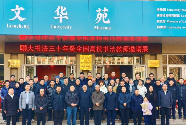 首个环节为聊城大学书法专业成立三十周年暨全国高校书法教师邀请展。展览由山东省教育书法家协会与聊城大学美术与设计学院联合主办,共征集展出深耕高校书法教育领域的优秀校友作品70余幅,集中呈现聊大书法人的专业造诣与精神传承。