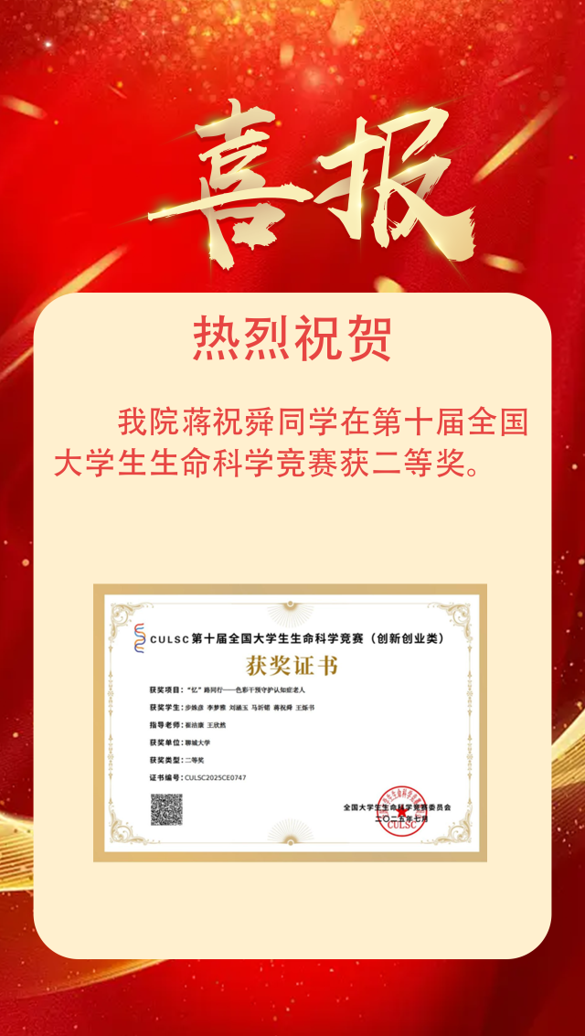 » 喜报|我院学子荣获第十届全国大学生生命科学竞赛二等奖