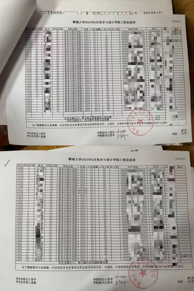 聊城大学美术与设计学院2025年6月勤工助学工资公示 作者:么翠红 来源:美术与设计学院 发布时间:2025-07-10 阅读次数: 为规范学院勤工助学管理工作,确保工资发放公开、公平、公正,根据《美术与设计学院勤工助学管理办法》相关规定,现将2025年6月勤工助学工资发放情况予以公示 ,具体内容如下: (审核 孔德滕)